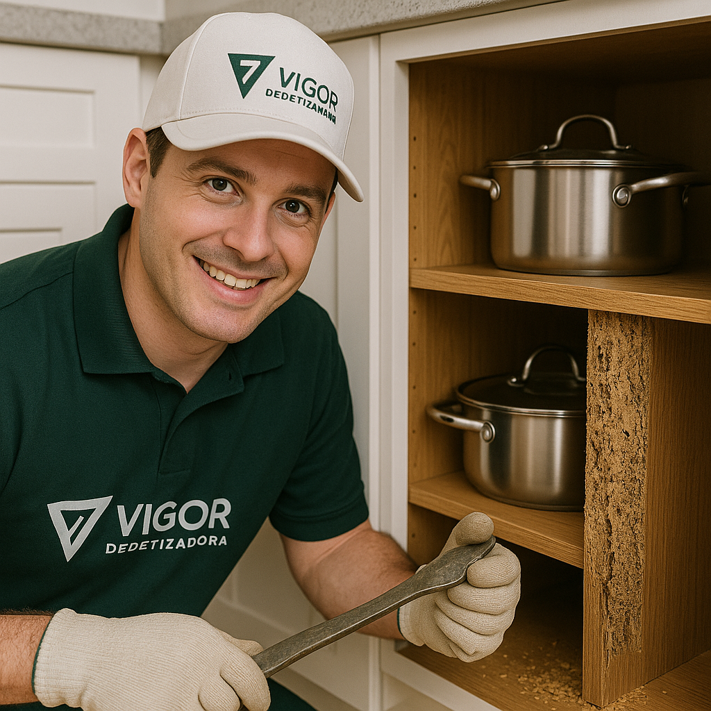 Com mais de 7 anos de experiência, oferecemos soluções personalizadas para seu lar. Nossa equipe qualificada utiliza técnicas inovadoras para eliminar pragas e garantir um ambiente seguro. Priorizamos transparência, cuidado e honestidade em cada serviço, com preço justo e qualidade. Nosso compromisso é entender suas necessidades e superar expectativas, sem taxas ocultas ou cobranças indevidas. Vigor Dedetizadora: seu parceiro de confiança para um ambiente livre de pragas.